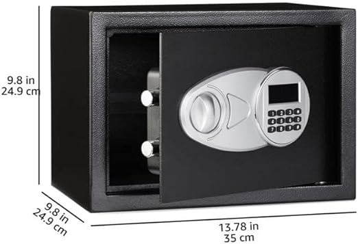 SaleAmazon Basics Steel Security Safe and Lock Box with Electronic Keypad - Secure Cash, Jewelry, ID Documents, 0.5 Cubic Feet, Black, 13.8"W x 9.8"D x 9.8"H