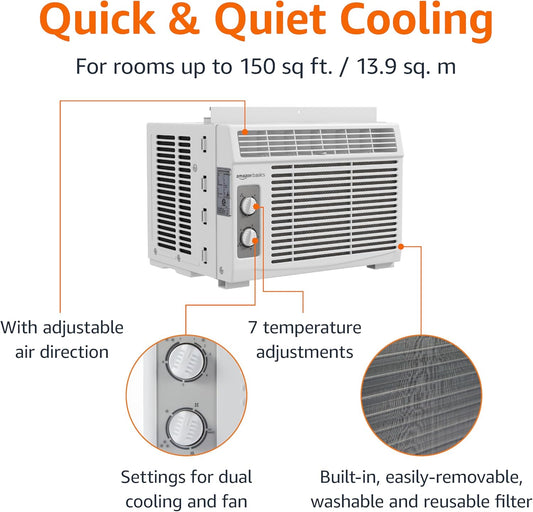 SaleAmazon Basics Window-Mounted Air Conditioner with Mechanical Control - Cools 150 Square Feet, 5000 BTU, AC Unit